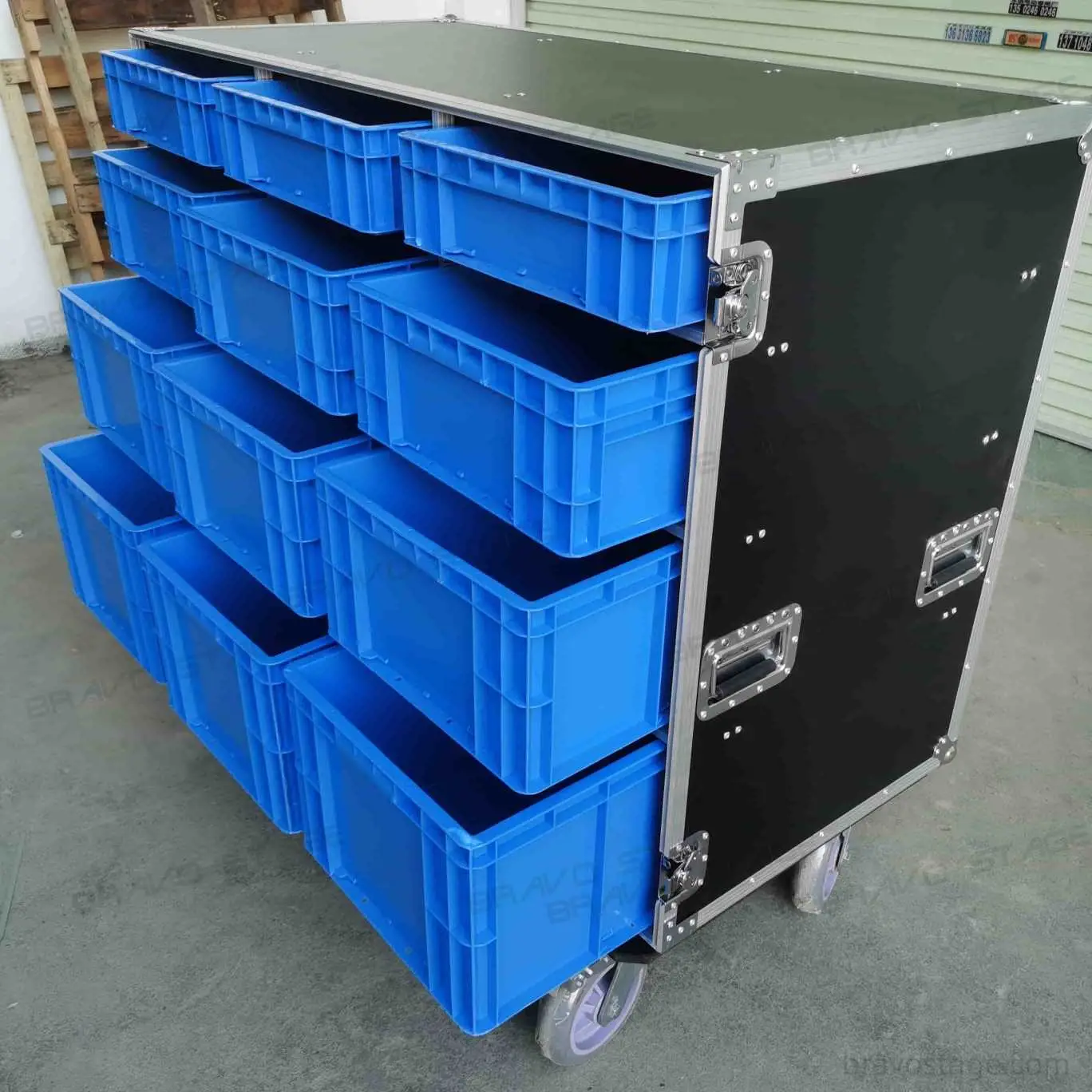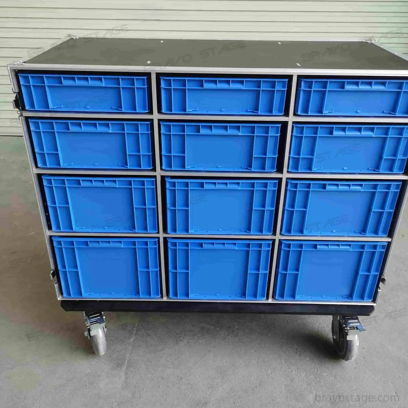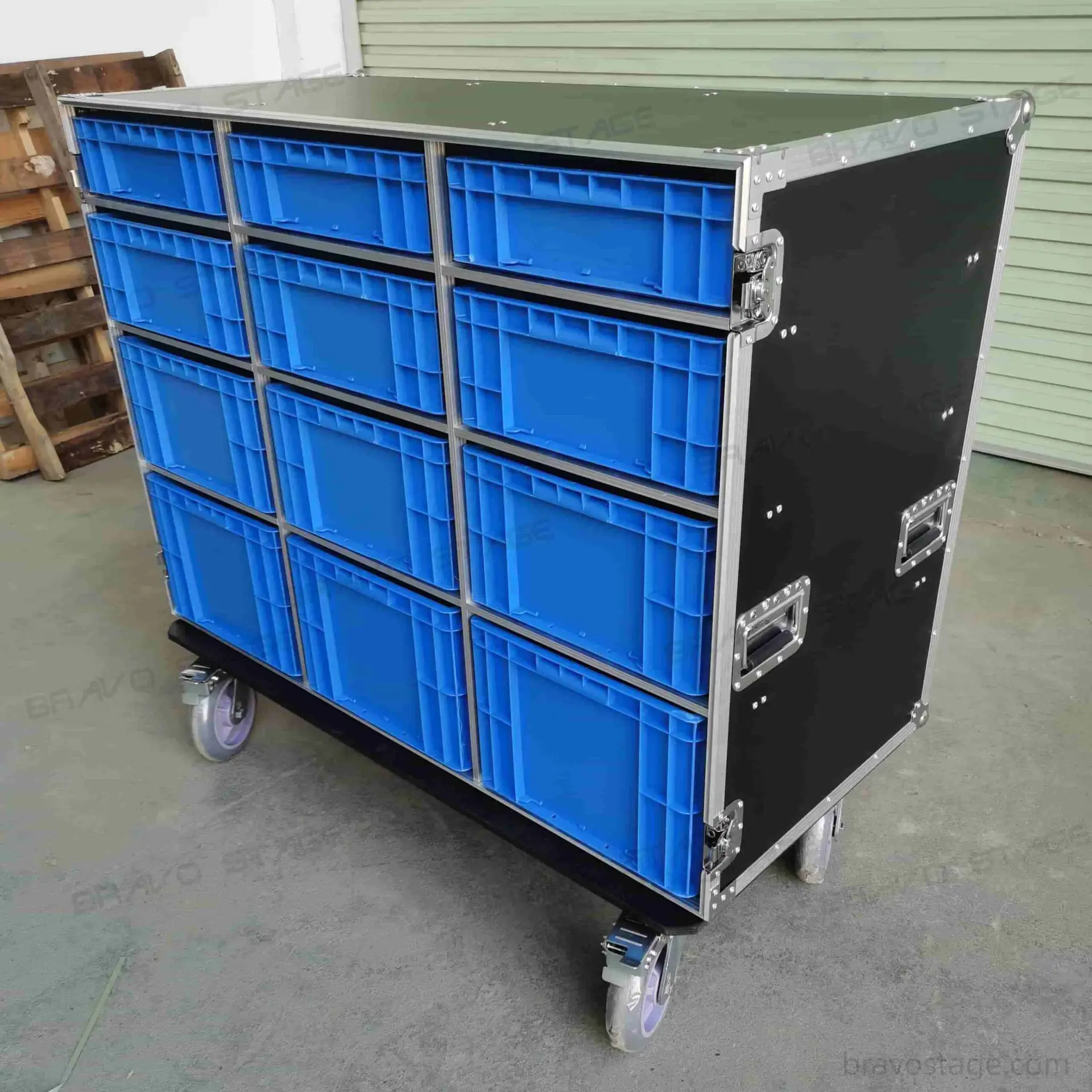 The 12 Euro Plastic Drawer Flight Case Tool Motorsport Road Trunks is a custom-built Flight Case using heavy duty fittings and standard finish Black Hexaboard. Our flight case offer the best protection for your kit and is the choice of Professionals the world over.
