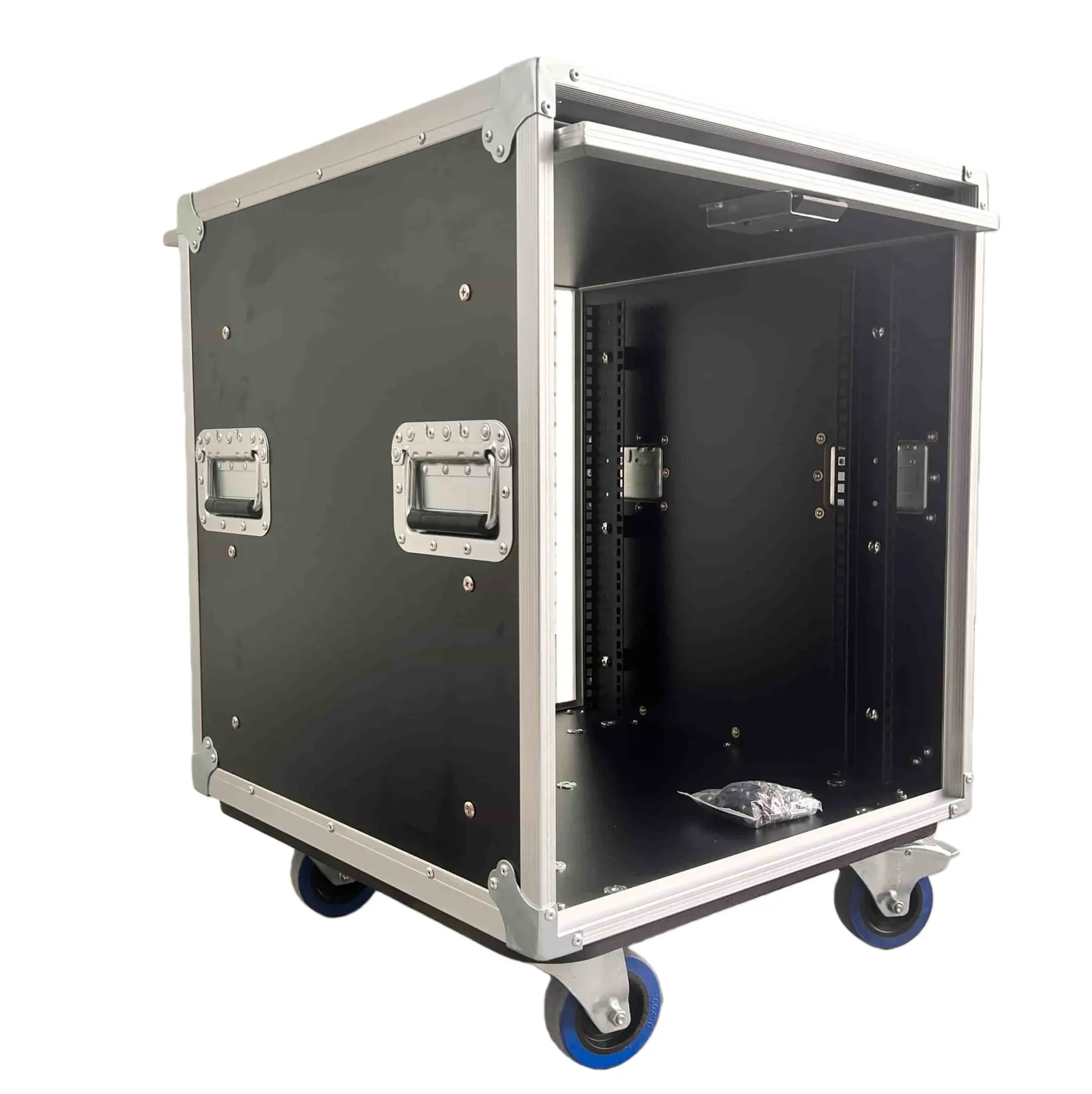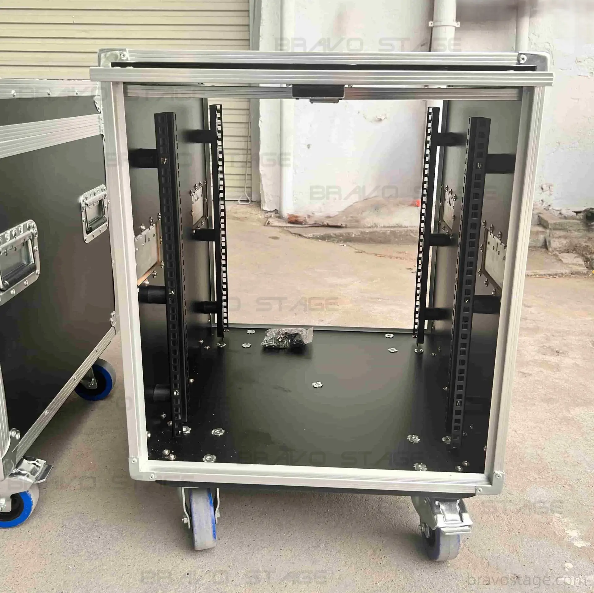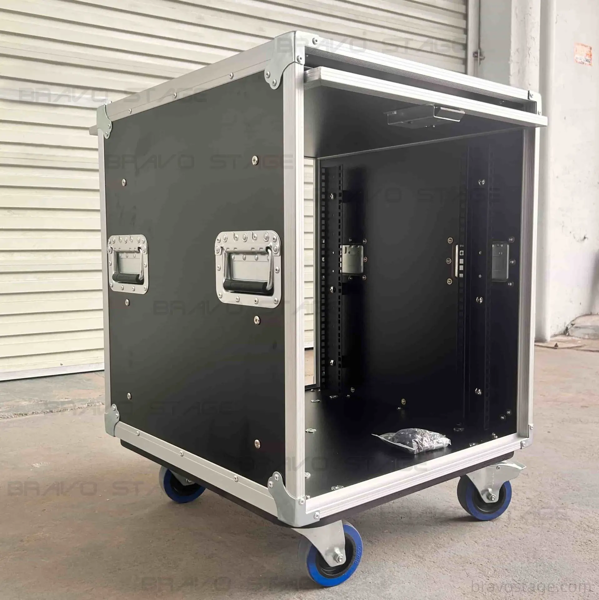 • Premium Case Hardware: Crafted with premium materials and precision engineering, our 12U Slam Rack boasts Penn Elcom slam latches for smooth, secure door closure. With Penn Elcom hardened steel corners, recessed spring-loaded handles, 12mm hard-wearing laminate plywood; aluminium edging; and sturdy 150KG 4” blue rubber Penn Elcom castors (2 with brakes), durability is guaranteed.