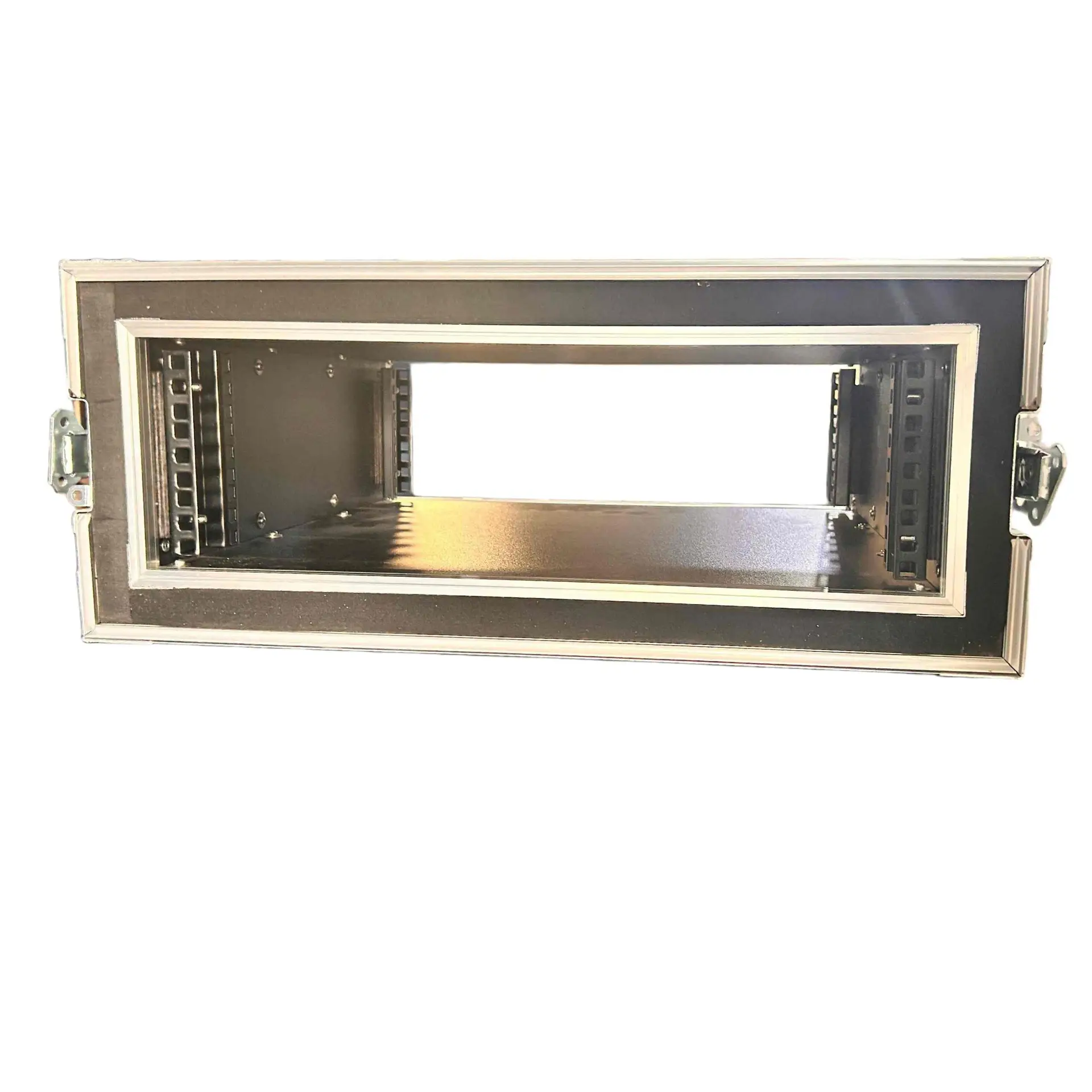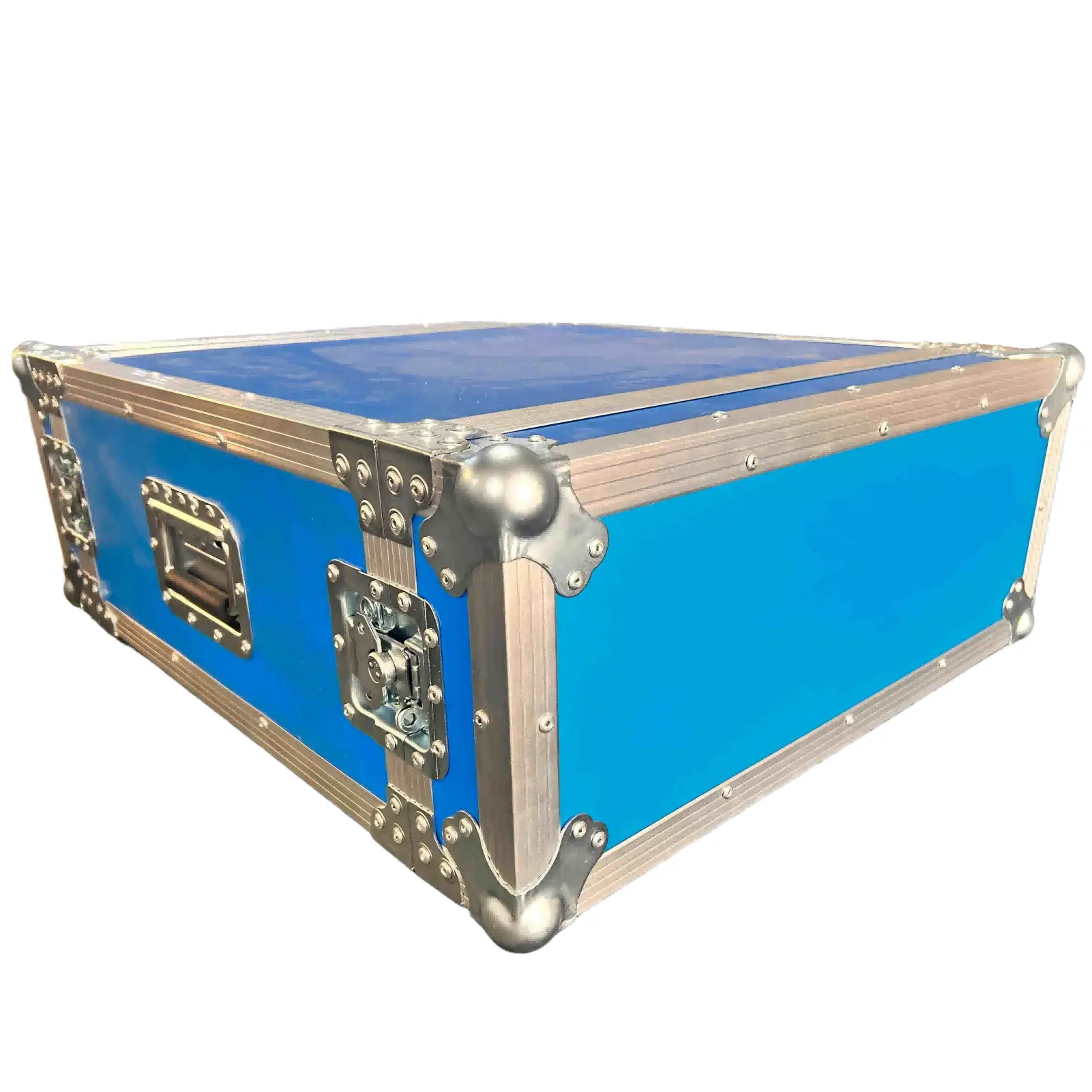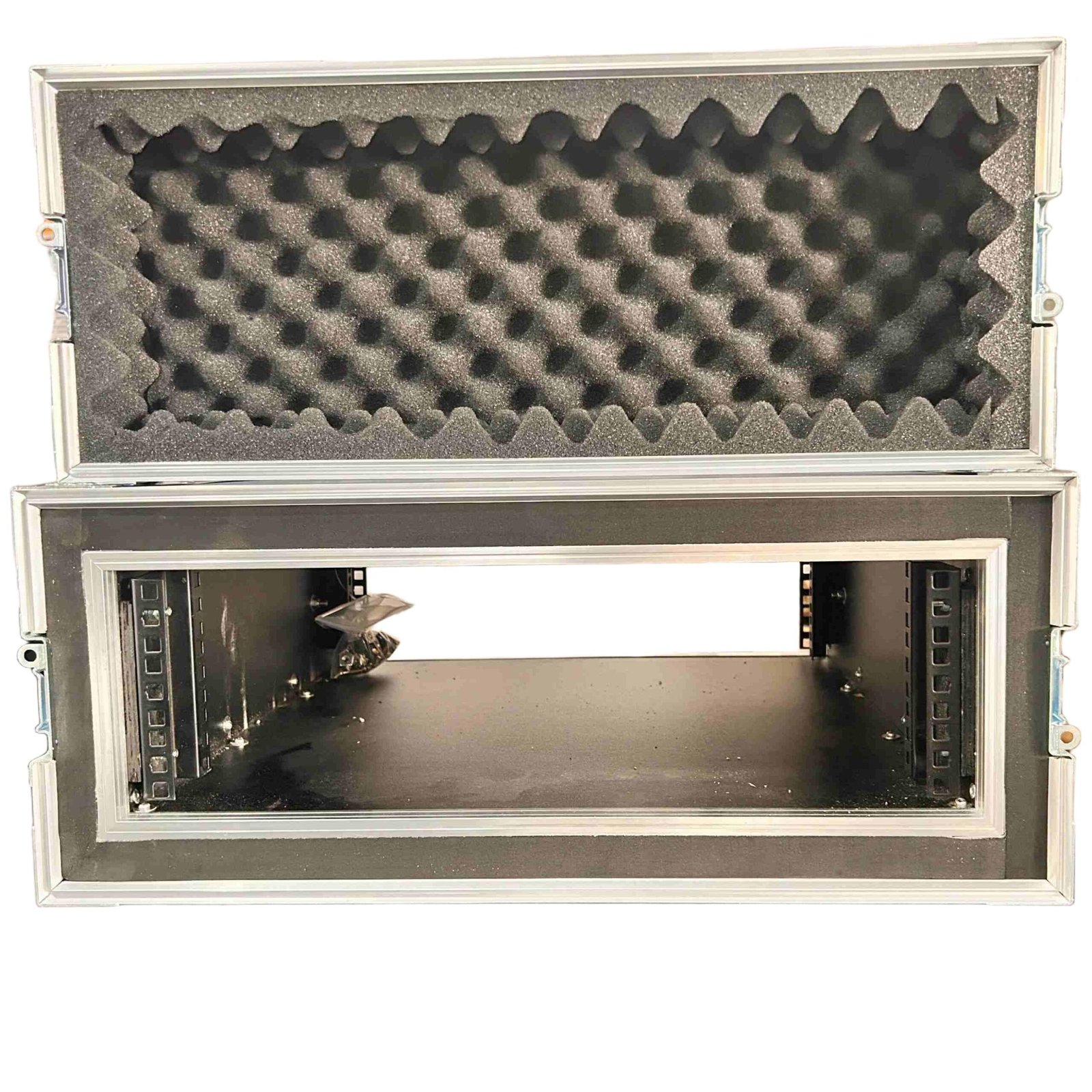 3U ATA Style 8U Shockproof Rack Mount Flight Case 20in. Depth . This meticulously crafted Shockproof Vertical Amplifier Rack Case serves as an exemplary storage solution, offering security and convenience for a diverse range of amplifiers, professional DJ mixers, effects units, and standard 19″ width rack-mountable pro audio/DJ/Network gear. Engineered with steadfast precision and equipped with dual mounting rails, this case assures unwavering equipment stability, eliminating the risk of displacement or slippage. Furthermore, the design prioritizes minimizing strain on rack ears, thereby enhancing overall durability and longevity.