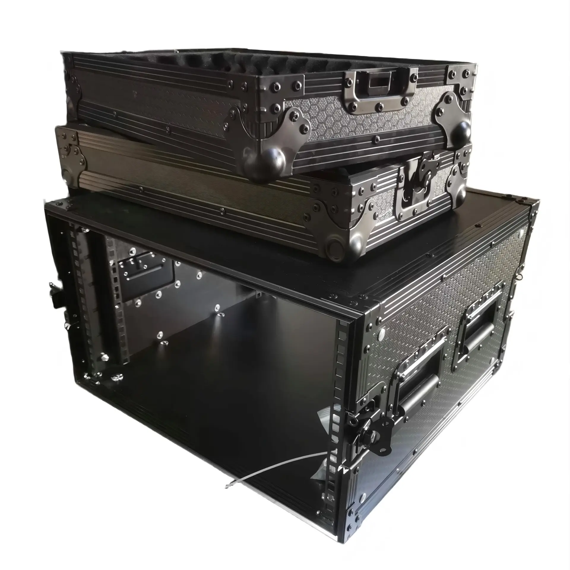 Built with heavy-duty construction design and dual mounting rails your equipment won’t dislodge or slip, and strain on the rack ears will be minimized. These professional-grade products also include external spring-loaded handles and butterfly twist latches with included padlocks for added security. The rubber feet at the base will ensure maximum stability when stacking multiple units.