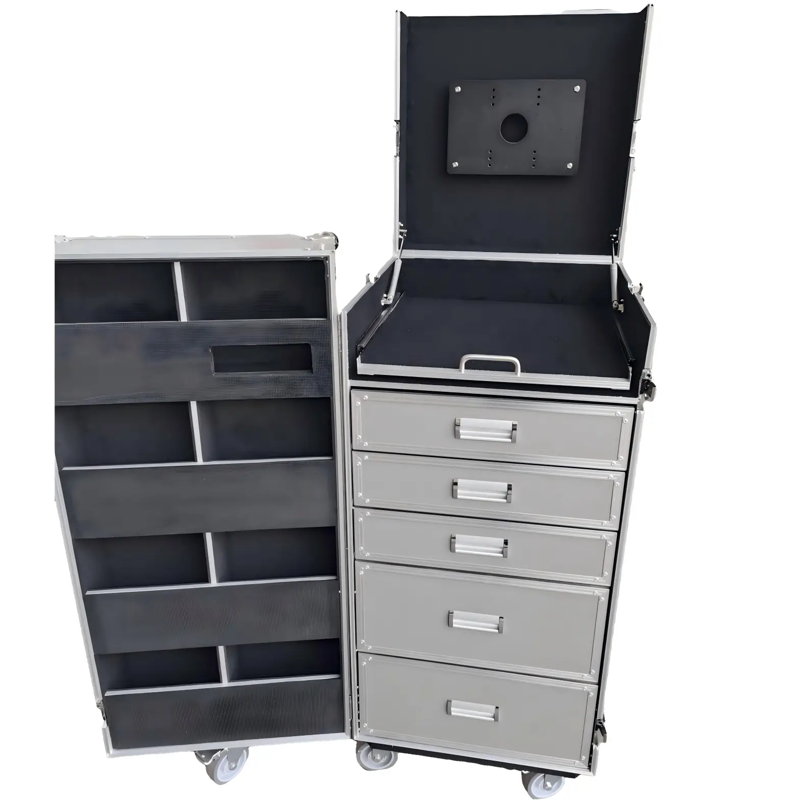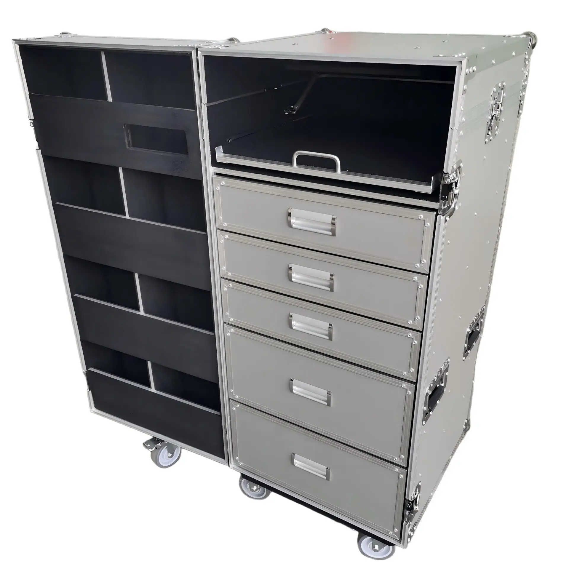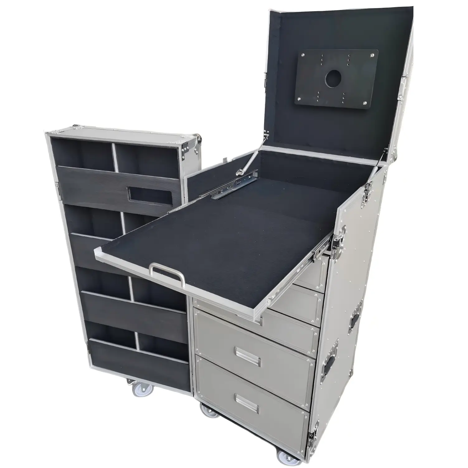 his case is a professional touring storage and workstation solution designed for organized equipment handling in stage, broadcast, and production environments.