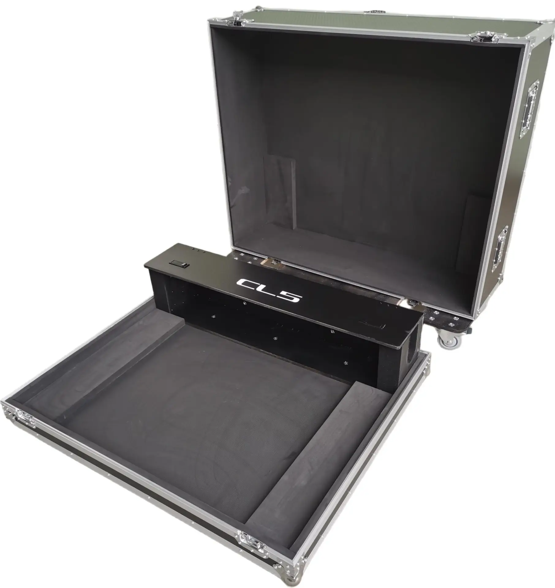 Protect your Yamaha CL5 Mixer at the gig and during transit with the silver-on-black , an ATA-300-style flight case equipped with a Doghouse compartment and 4″ rubber wheels.